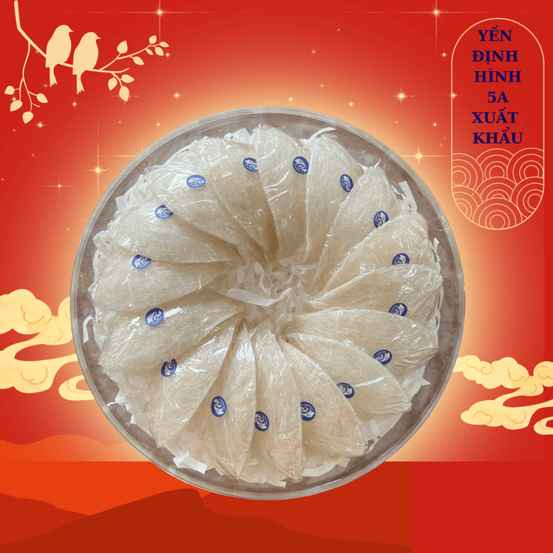 Yến định hình 5A là dòng sản phẩm cao cấp, được tuyển chọn từ những tổ yến nguyên chất 100% khai thác tại các vùng biển trong lành của Việt Nam. Mỗi tổ yến được làm sạch hoàn toàn bằng phương pháp thủ công, sau đó định hình cẩn thận để giữ nguyên cấu trúc sợi tự nhiên, tạo nên hình dáng đẹp mắt và đều đặn.